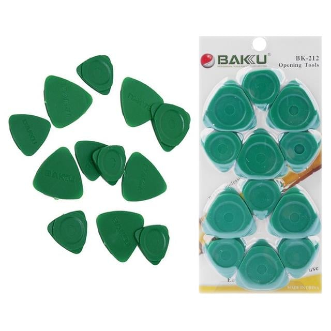 Baku BK-212, telefon ve laptop tamiri için özel olarak tasarlanmış 12 parçalık profesyonel bir açma aparatı pena setidir. Set içerisinde 6 adet 32mm ve 6 adet 25mm olmak üzere toplam 12 farklı pena bulunur. ABS plastik malzemeden üretilmiş olup dayanıklı ve uzun ömürlü kullanım sunar. Yeşil renkli ergonomik tasarımı ile rahat kavrama ve kullanım imkanı sağlar. Cep telefonları, tabletler, laptoplar ve diğer elektronik cihazların güvenli şekilde açılması için ideal bir tamir setidir.